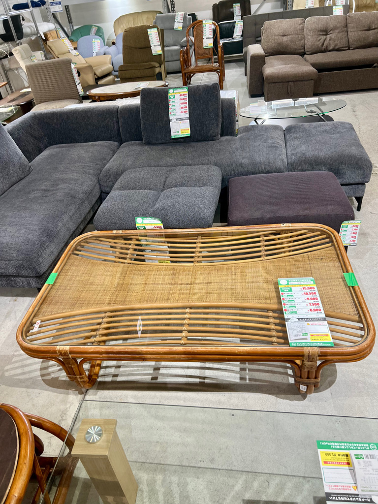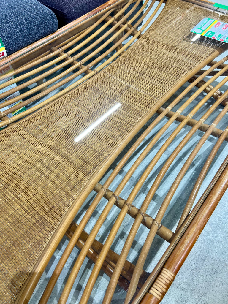 【SOLD】センターテーブル(籐/ガラス)(No:1268567)