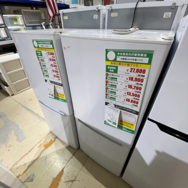 [SOLD]冷蔵庫/2019年製/106L(No:1251696/8/在庫2台)